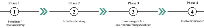Zeitstrahl der vier Phasen des Verbraucherinsolvenzverfahrens